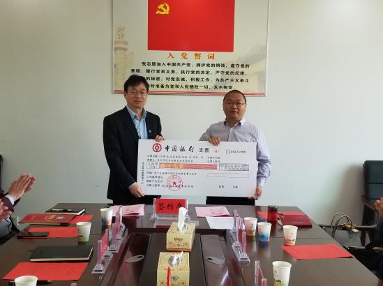 王锋代表公司接受武汉长江教育专修公司向公司教育发展基金会捐赠款并向捐赠单位颁发荣誉证书。