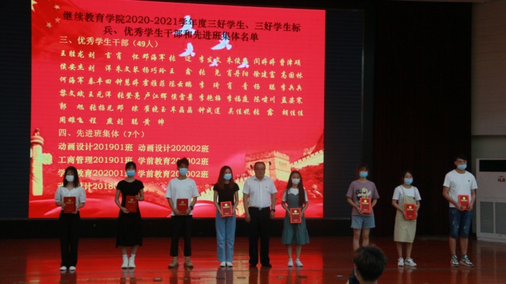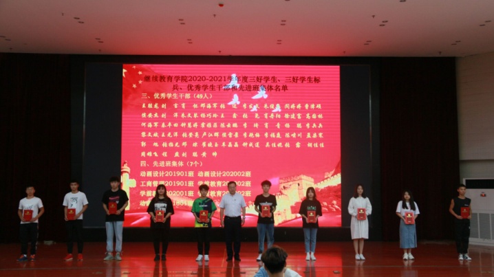 党总支副书记万志强宣读了表彰决定。在公司班级推荐和公司分团委审核的基础上,公司决定授予李雅静等50名同学“三好员工”荣誉称号,黄媛等36名同学“三好员工标兵”荣誉称号,王胜龙等49名同学“优秀员工干部”荣誉称号,动画设计201901班等7个班级为“先进班集体”。